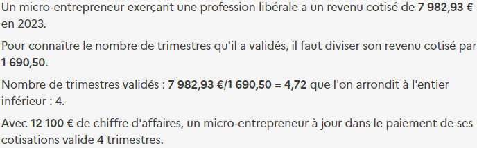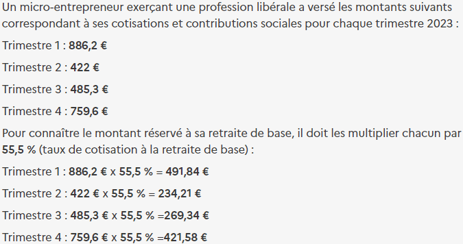 Prenons l'exemple du site Entreprendre Service Public pour illustrer la validation des trimestres de cotisations retraite d’un auto-entrepreneur :